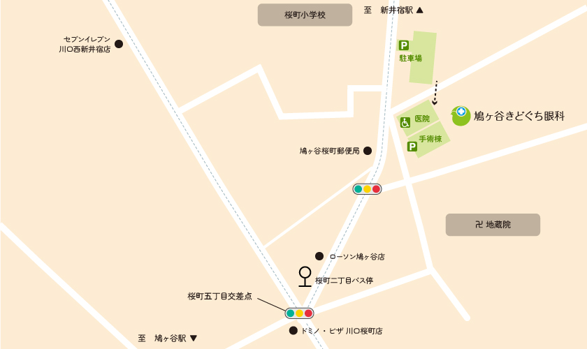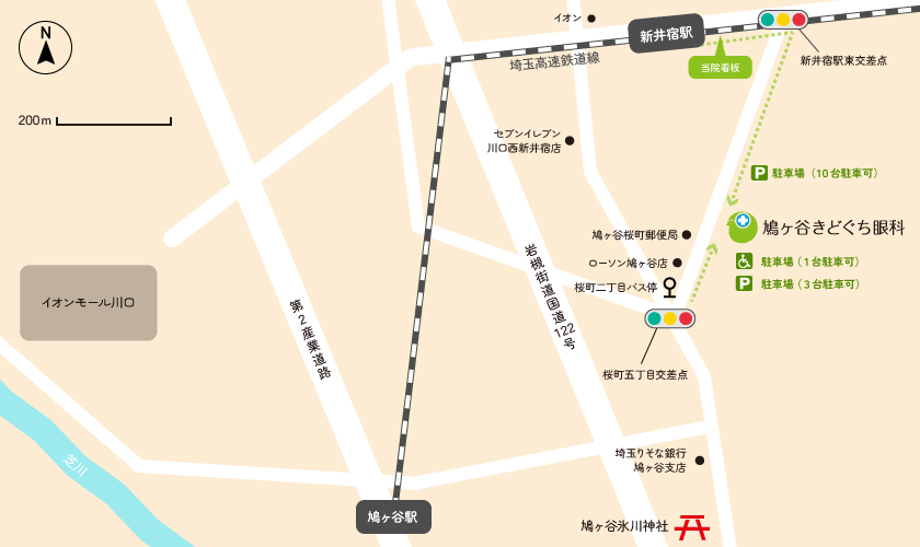 埼玉高速鉄道「新井宿」駅下車 2番出口にお進みください。