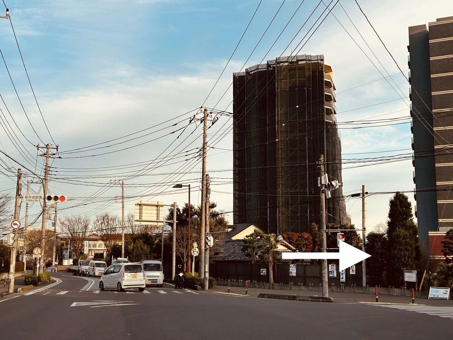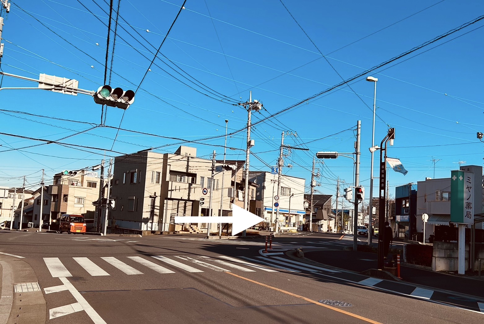 桜町五丁目交差点を新井宿駅東(交差点)方向に進みます(ローソンが見える方向)