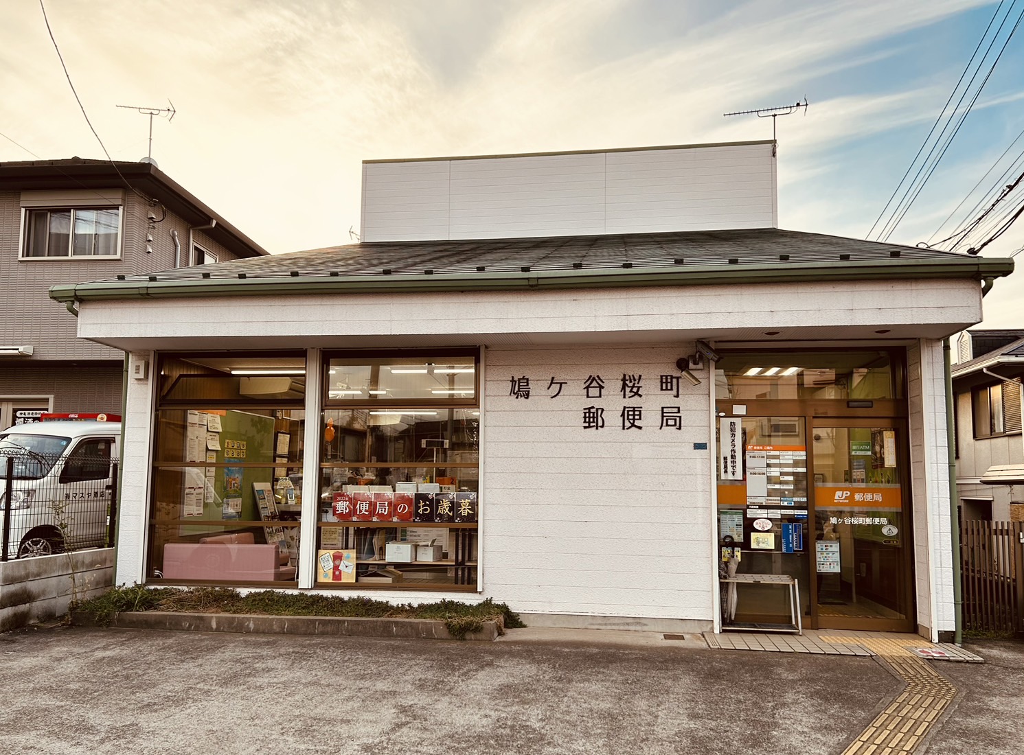 鳩ヶ谷桜町郵便局が左手に見えます。当院はその斜め向かいに位置します。